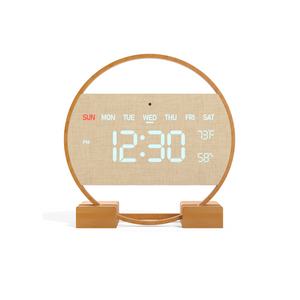 Driini Modern Digital LED Wall Clock - Bamboo Wood with Large Number Display - Day of Week, Time, Temperature, and Humidity Display