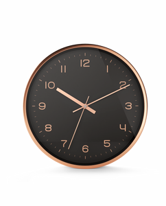 Driini Modern Black Rose Gold Aluminum Analog Wall Clock (12") -Easy-to-Read Numbers