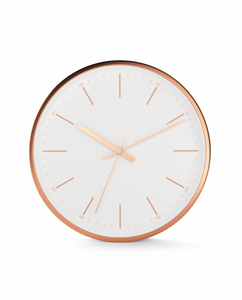 Driini Modern White Rose Gold Aluminum Analog Wall Clock (12") - Classic Tick Marks